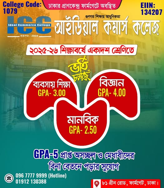 আইডিয়াল কমার্স কলেজ দেশের খ্যাতনামা শিক্ষাবিদ, বুদ্ধিজীবী ও মেধাবী ব্যক্তিত্বের দিক-নির্দেশনা এবং তত্ত্বাবধানে পরিচালিত। ‘আইডিয়াল কমার্স কলেজ’-এর নিজস্ব ক্যাম্পাস ঢাকা শহরের প্রাণ কেন্দ্র ফার্মগেট এলাকায় অবস্থিত । অত্যন্ত সুন্দর ও মনোরম পরিবেশে শিক্ষার্থীদের মেধা এবং মননবিকাশের জন্য রয়েছে ঝকঝকে পরিষ্কার-পরিচ্ছন্ন ক্লাস রুম, সমৃদ্ধ লাইব্রেরি, অডিটোরিয়াম, আধুনিক কম্পিউটার ল্যাব ও ইন্টারনেটসহ প্রয়োজনীয় সকল সুযোগ-সুবিধা । আর ও থাকছে যুগের চাহিদা অনুযায়ী ডিবেটিং , উপস্থিত বক্তৃতা, ইনডোর গেম্স ও আউটডোর গেম্স সুবিধা । সর্বোপরি রাজনীতি মুক্ত ও ধুমপান মুক্ত সুশৃঙ্খল একটি অনন্য সাধারণ ক্যাম্পাসের নিশ্চয়তাসহ উন্নত ও যুগোপযোগী শিক্ষাক্ষেত্রের একটি গর্বিত ও ব্যতিক্রমী নাম আইডিয়াল কমার্স কলেজ।’সময়ের চাহিদা বিবেচনায় রেখে ব্যবসায় শিক্ষার পাশাপাশি বিজ্ঞান শাখা চালু করা হয়েছে । তথ্য ও প্রযুক্তি নির্ভর উন্নত বিশ্বের আধুনিকতা এদেশের বর্তমান প্রজন্মের মাঝে ছড়িয়ে দেওয়ার উদ্দেশ্যেই প্রতিষ্ঠিত হয়েছে আইডিয়াল কমার্স কলেজ’নামক শিক্ষা প্রতিষ্ঠানটি । যার মূল শ্লোগান" গুণগত শিক্ষায় আধুনিকতার ছোঁয়া । শিক্ষার শক্তি শিক্ষার্থীদের মাঝে যেন জন্ম দেয় মনুষ্যত্বের, তারা যেন গড়ে ওঠে আলোকিত মানুষ হিসেবে সেই লক্ষ্যে আইডিয়াল কমার্স কলেজের সকল কার্যক্রম আবর্তিত । সুযোগ্য পরিচালনা কমিটির বিজ্ঞতা, প্রজ্ঞা ও বিচক্ষণতা কলেজ পরিচালনার ক্ষেত্রে যথাযথ ভাবে নিয়োজিত হচ্ছে স্বাচ্ছন্দ্যময় শিক্ষা পরিবেশ সৃষ্টির লক্ষ্যে। শিক্ষায় ইতিবাচক পরিবর্তনের লক্ষ্যে ২০০৪ সালে আইডিয়াল কমার্স কলেজ প্রতিষ্ঠিত হয় । প্রতিষ্ঠা লগ্ন থেকেই ICC ব্যবসায় শিক্ষা শাখায় প্রতিটি বোর্ড পরীক্ষায় অভাবনীয় সাফল্য অর্জন করে আসছে । যার ফলে রাজধানীসহ সমগ্র বাংলাদেশে আইডিয়াল কমার্স কলেজ (ICC) একটি মান সম্মত আধুনিক শিক্ষা প্রতিষ্ঠান হিসেবে ব্যাপক পরিচিতি অর্জন করতে সক্ষম হয়েছে । আর এই ব্যাপক পরিচিতির কারণেই প্রতি বছর অনেক ছাত্র-ছাত্রী এবং অভিভাবক এই কলেজে বিজ্ঞান শাখা খোলার জন্য ICC কর্তৃপক্ষকে অনুরোধ করে আসছেন । ভাল ফলাফল, নিয়মানুবর্তিতা, শৃংখলা, সময়নিষ্ঠা, অধ্যবসায়, জ্ঞানার্জনে প্রতিযোগিতা ও রাষ্ট্রীয় কর্মকান্ডে অংশ গ্রহণ করে নান্দনিক মহিমায় পরিচালিত আইডিয়াল কমার্স কলেজে বিজ্ঞান শাখা চালু করা এখন সময়ের দাবী । তাছাড়া একথা সর্বজনস্বীকৃত যে, বিজ্ঞান শিক্ষা ছাড়া বর্তমান সভ্যতা অচল । বিজ্ঞান মনস্ক ব্যক্তি ও বিজ্ঞান শিক্ষার ক্ষেত্র তৈরিতে প্রাতিষ্ঠানিক বিজ্ঞান শিক্ষা এখন যুগের চাহিদা । আইডিয়াল কমার্স কলেজে ব্যবসায় শিক্ষা শাখার পাশাপাশি বিজ্